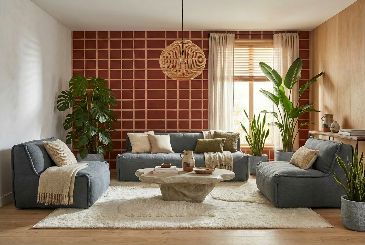Firefly_Gemini Flash_モダンナチュラルテイストのリビングにレイアウトした画像を作って_左の植物を消して_床を明るめのコンクリート調に変更して_スローケットを