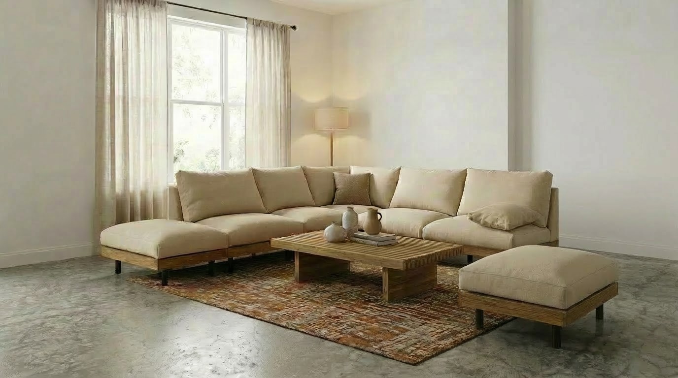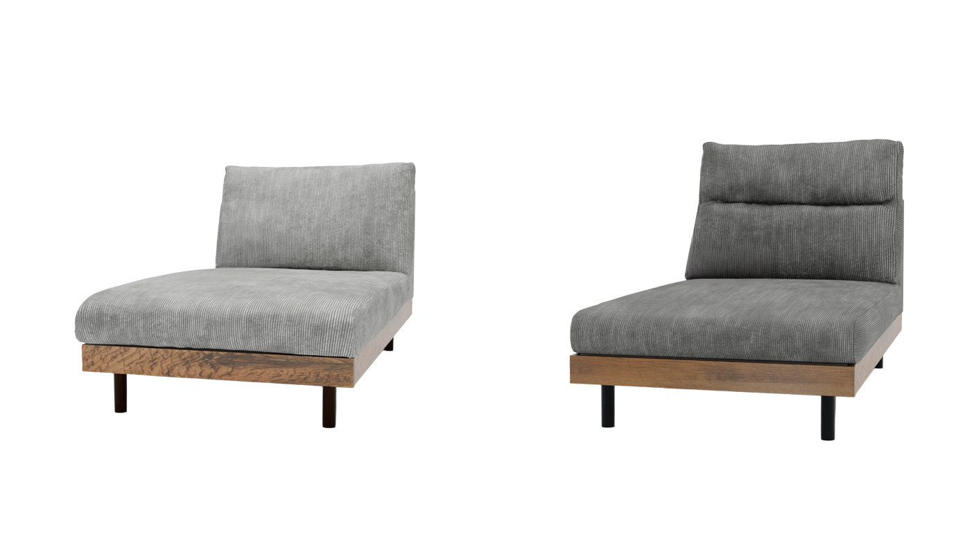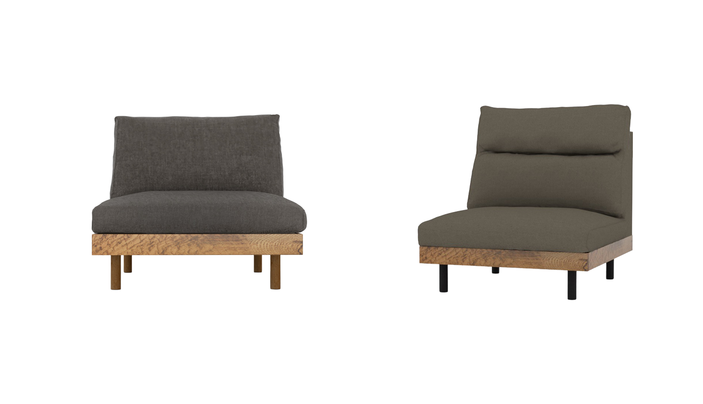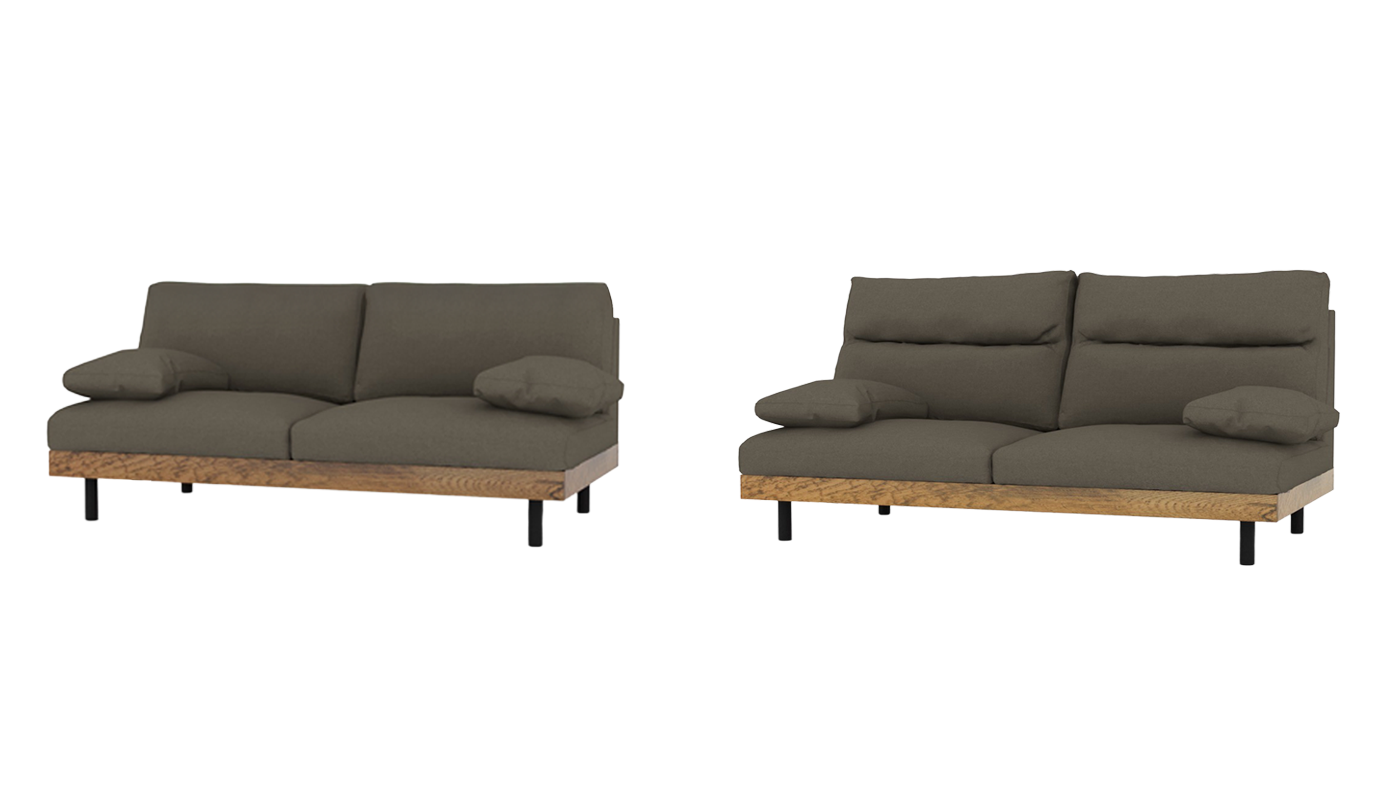 空間やライフスタイルに合わせて自在に組み替えられる、モジュール式ソファ。直線的でミニマルなフォルムを基調としながら、ユニットごとに配置を変えることで、コーナーソファや対面レイアウトなど、多彩なスタイルを実現します。背クッションの高さ、脚部のカラー、フレームのカラーはそれぞれ自由に組み合わせが可能。