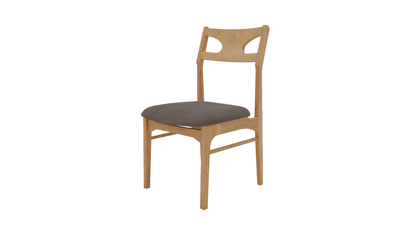 左右に施された有機的なカッティングが軽やかな印象を与え、空間に圧迫感を与えないチェア。