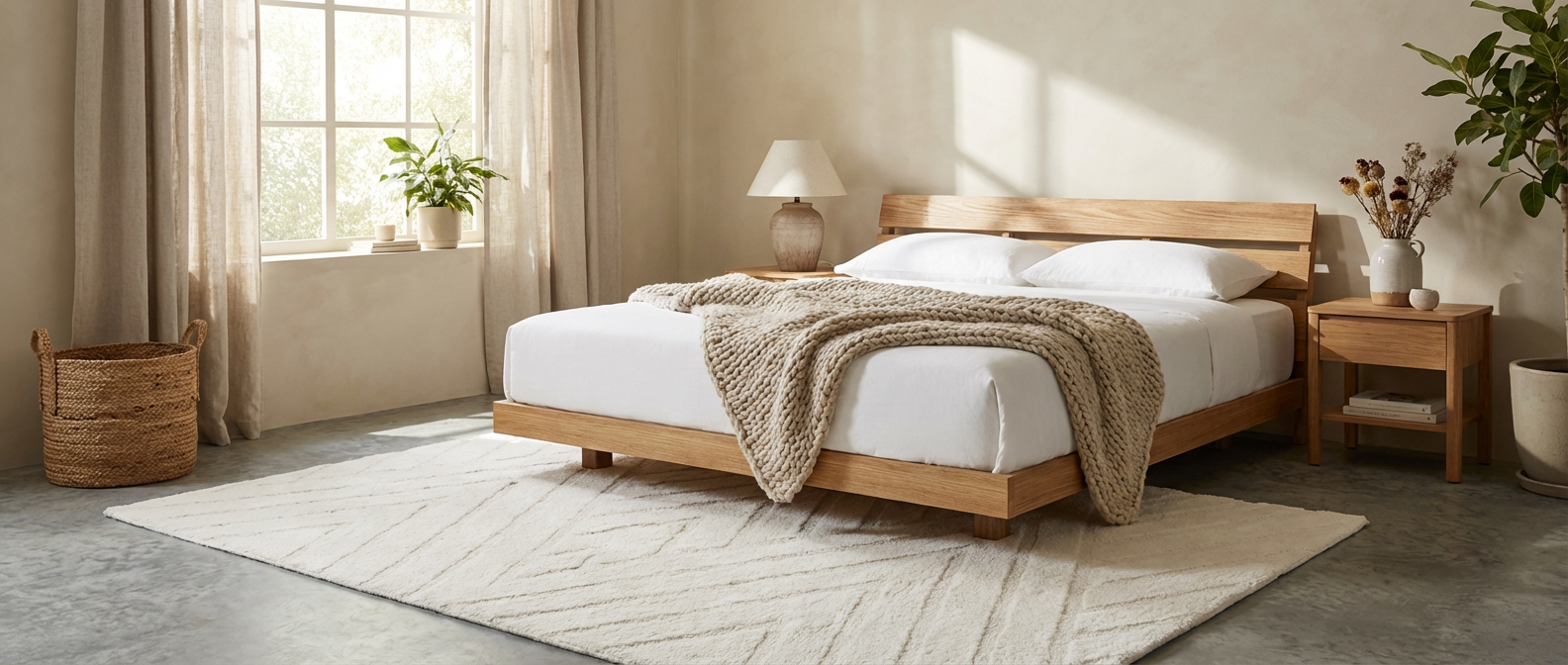 シンプルで上質な佇まいが魅力のベッドフレーム。