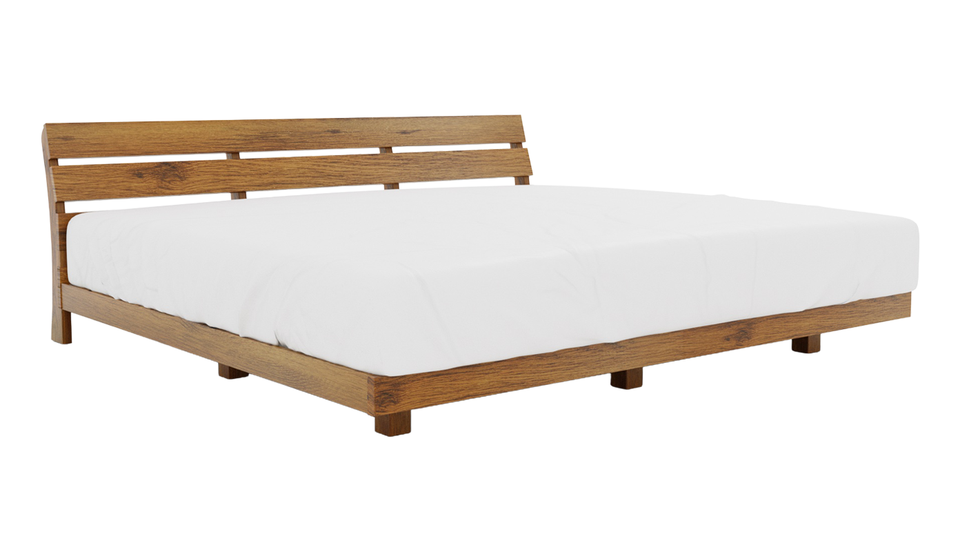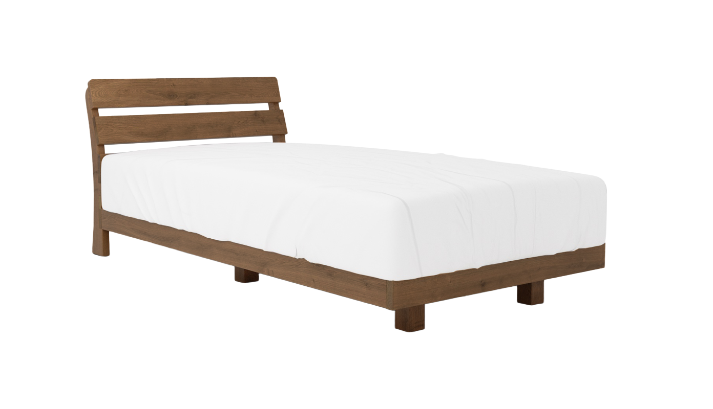 ヘッドボードには無垢材を使用し、天然木ならではの豊かな木目と素材感を存分に楽しめます。直線を基調としたデザインのため圧迫感が少なく、モダンからナチュラルまで幅広いインテリアに調和し使い込むほどに風合いが増し、長く愛用できる一台です。