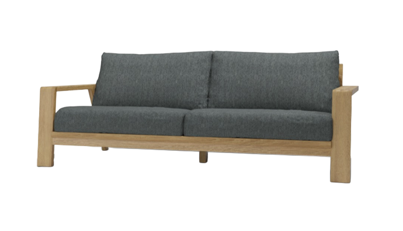 天然木を使用したインダストリアルなデザインのウッドソファ。広々とした座面と厚みのあるクッションにより、快適な座り心地を実現。フレームの背面のデザインをアイアン、もしくはウッドの2種類からお選びいただけます。