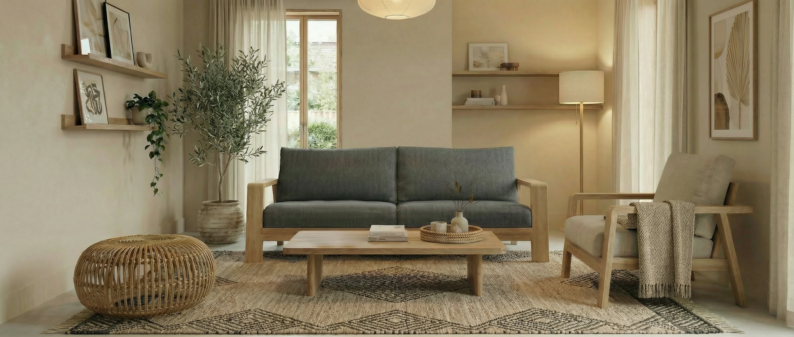 Firefly_Gemini Flash_モダンナチュラルテイストのリビングにレイアウトした画像を作って_左の植物を消して_床を明るめのコンクリート調に変更して_スローケットを