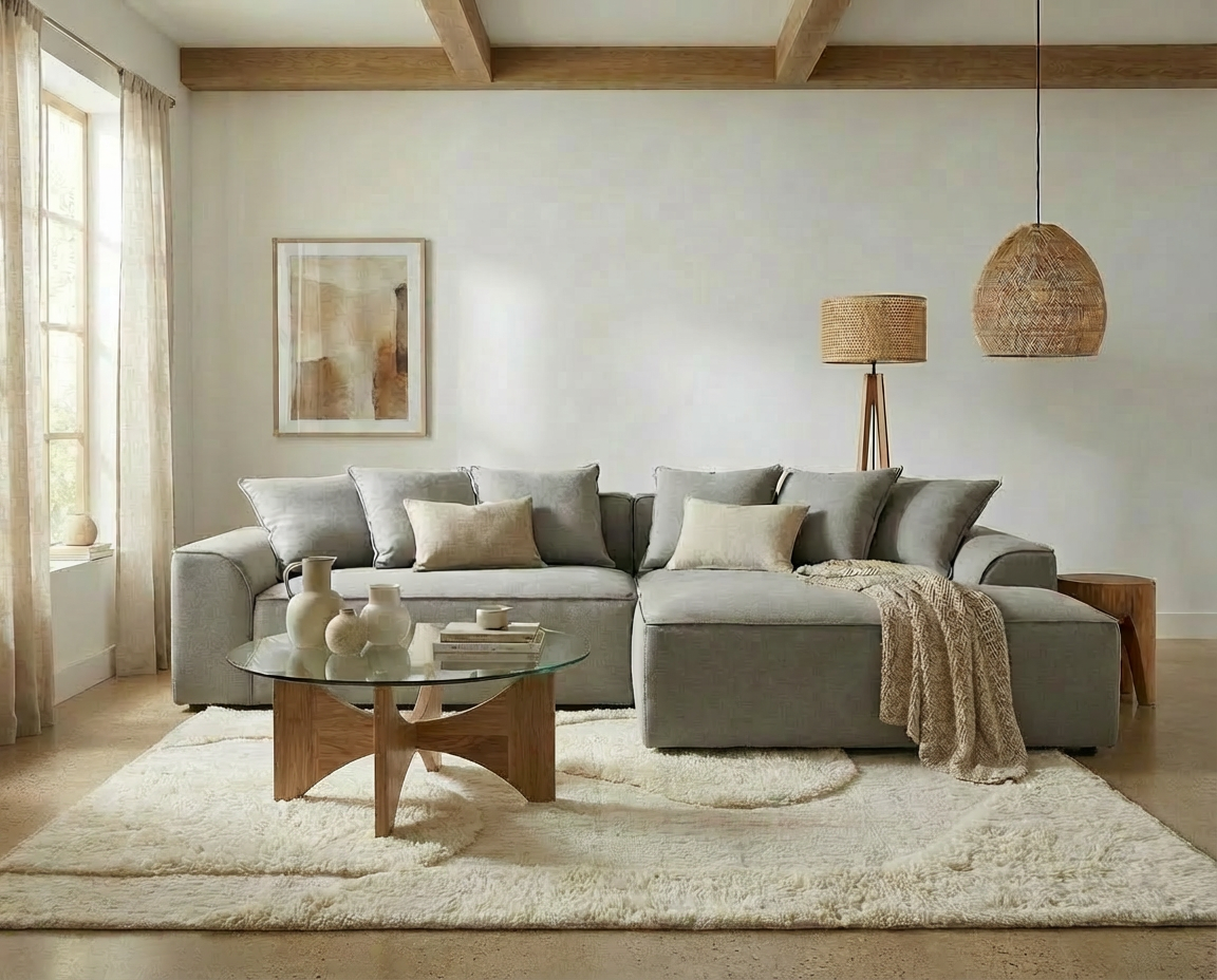 Firefly_モダンナチュラルテイストのリビングにレイアウトした画像を作って_植物を消して_絵のデザインを変更して_フロアランプを追加して 492303