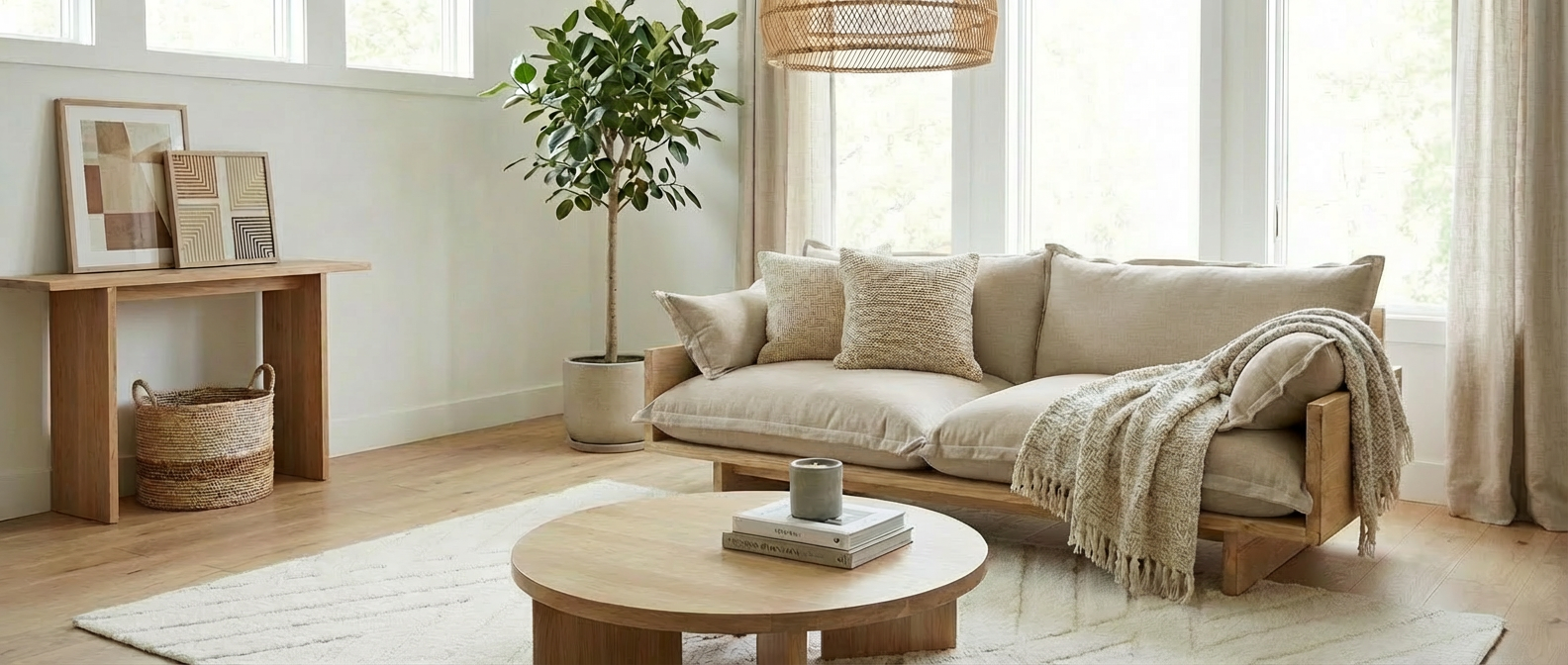 Firefly_モダンナチュラルテイストのリビングにレイアウトした画像を作って_植物を消して_絵のデザインを変更して_フロアランプを追加して 492303
