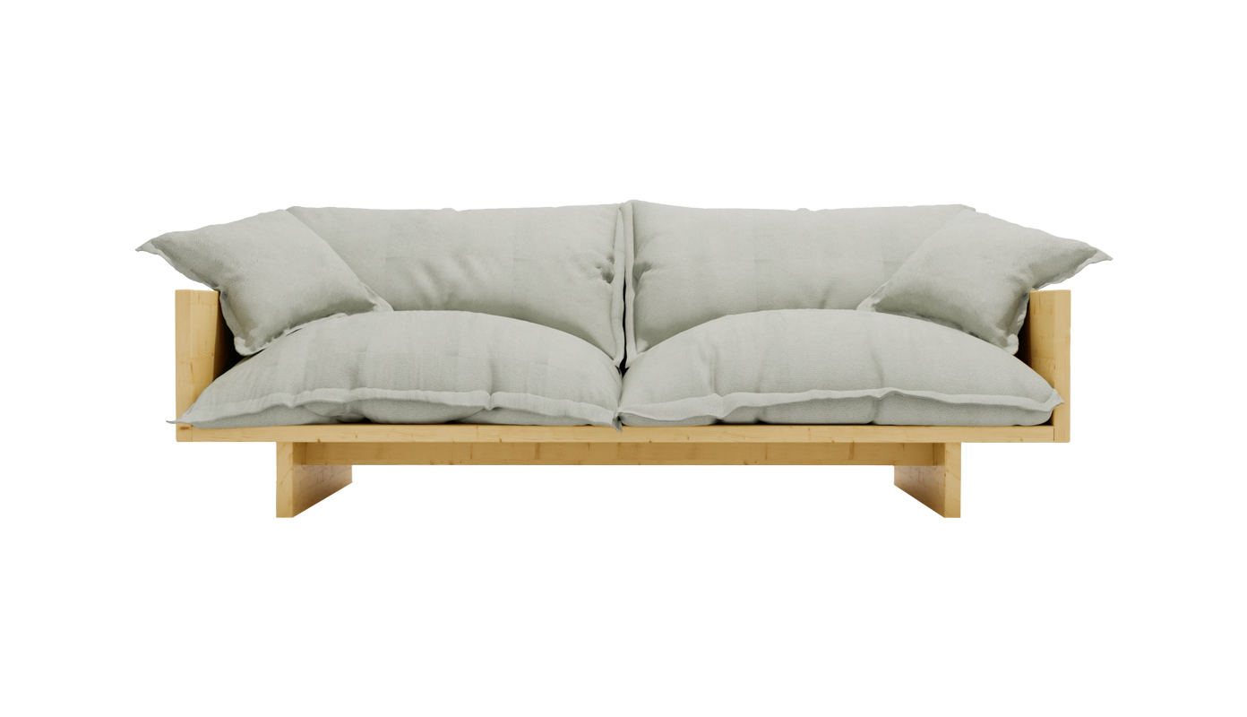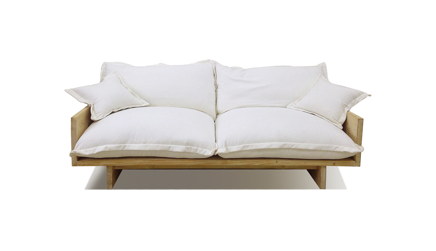 パイン無垢材を使用した、ナチュラルな風合いが魅力のソファ。